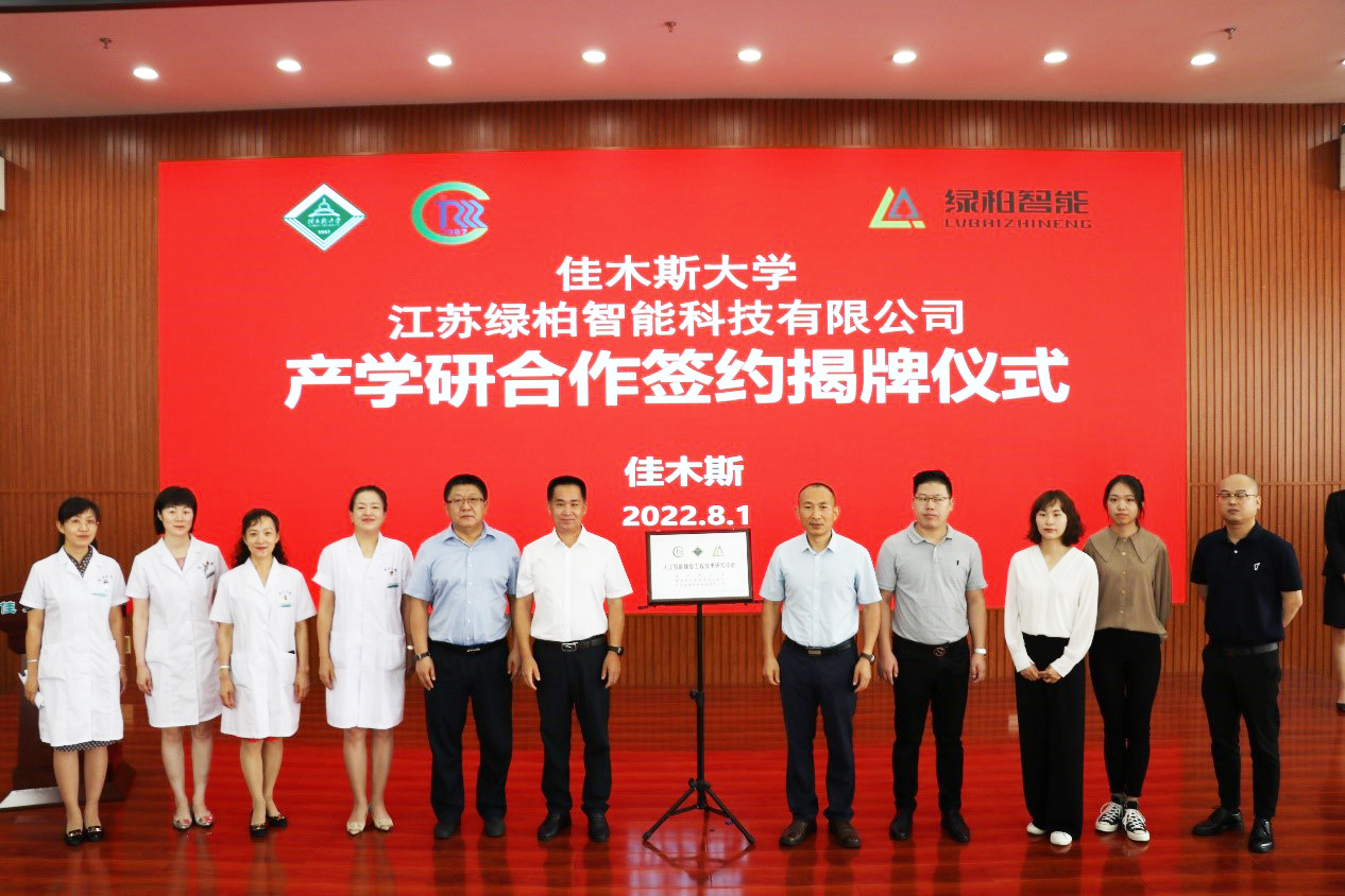 2022年8月1日上午,江蘇綠柏智能科技有限公司與佳木斯大學(xué)產(chǎn)學(xué)研合作簽約揭牌儀式在佳木斯大學(xué)康復(fù)醫(yī)學(xué)院多功能廳舉行。 佳木斯大學(xué)校長武瑞,佳木斯大學(xué)康復(fù)醫(yī)學(xué)院黨委書記龐偉、副